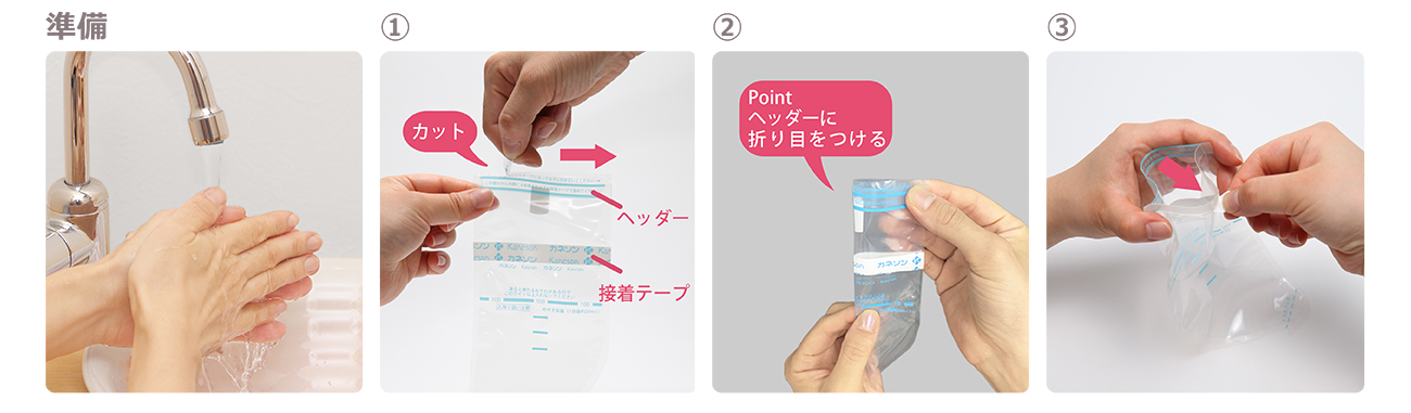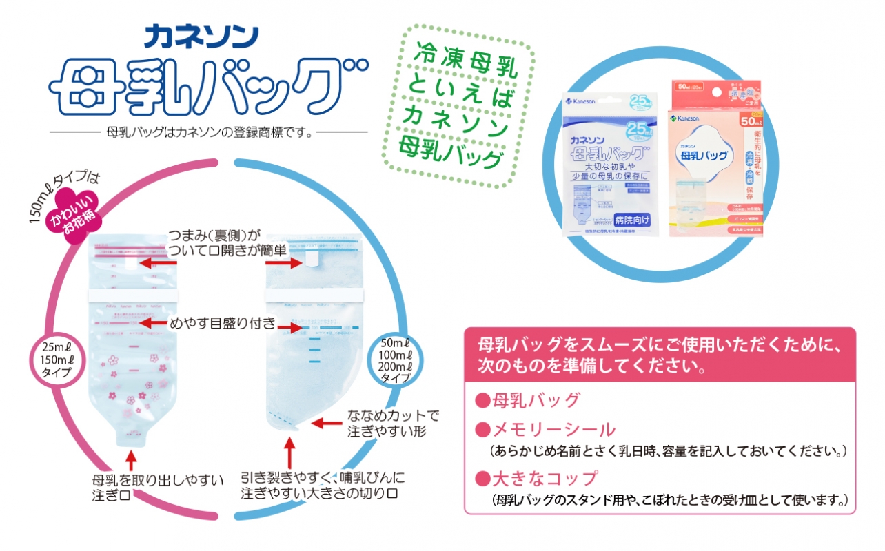 ※スムーズにご使用いただくためにカネソン母乳バッグ製品に入っている取扱説明書をご覧ください。