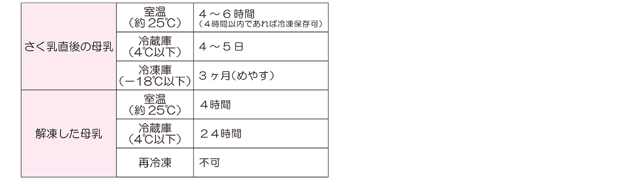 ※さく乳直後の母乳は冷凍庫(-18℃以下)で、6ヶ月までは保存可能ですが3ヶ月をめやすに与えることをおすすめします。