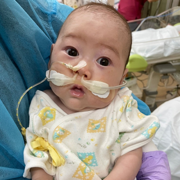 母乳が出ていたので、母乳バッグに入れて冷凍し、病院へ毎日届けていました。呼吸器が軽いものになったときに始めて授乳の練習をしましたが、なかなかうまく行かず、全部お口から飲めないので最後まで経鼻栄養を使っていました。