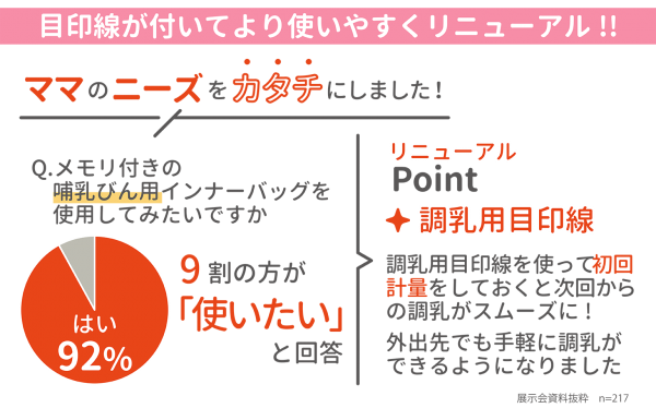 お客様の声を活かしてリニューアル!調乳用目印線でより使いやすくなりました。